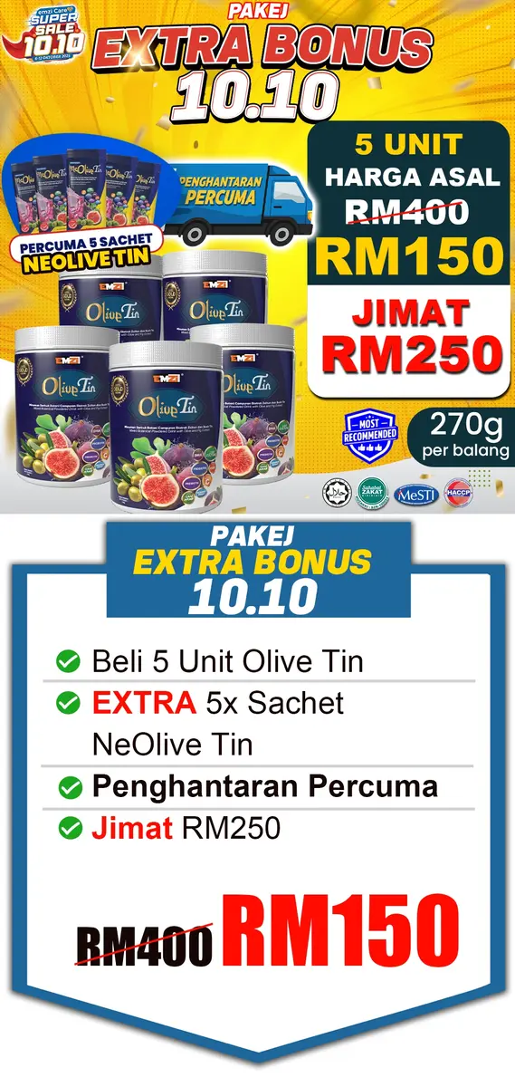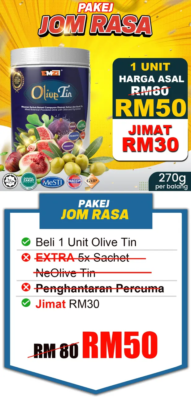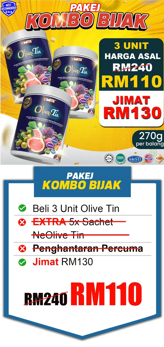 “Alhamdulillah olive tin dah sampai dlm keadaan baik.. Setiap bulan akan repeat order olive tin ni Sblm ni suami je yg minum sbb ada anxiety Alhamdulillah berkesan sngt²"
